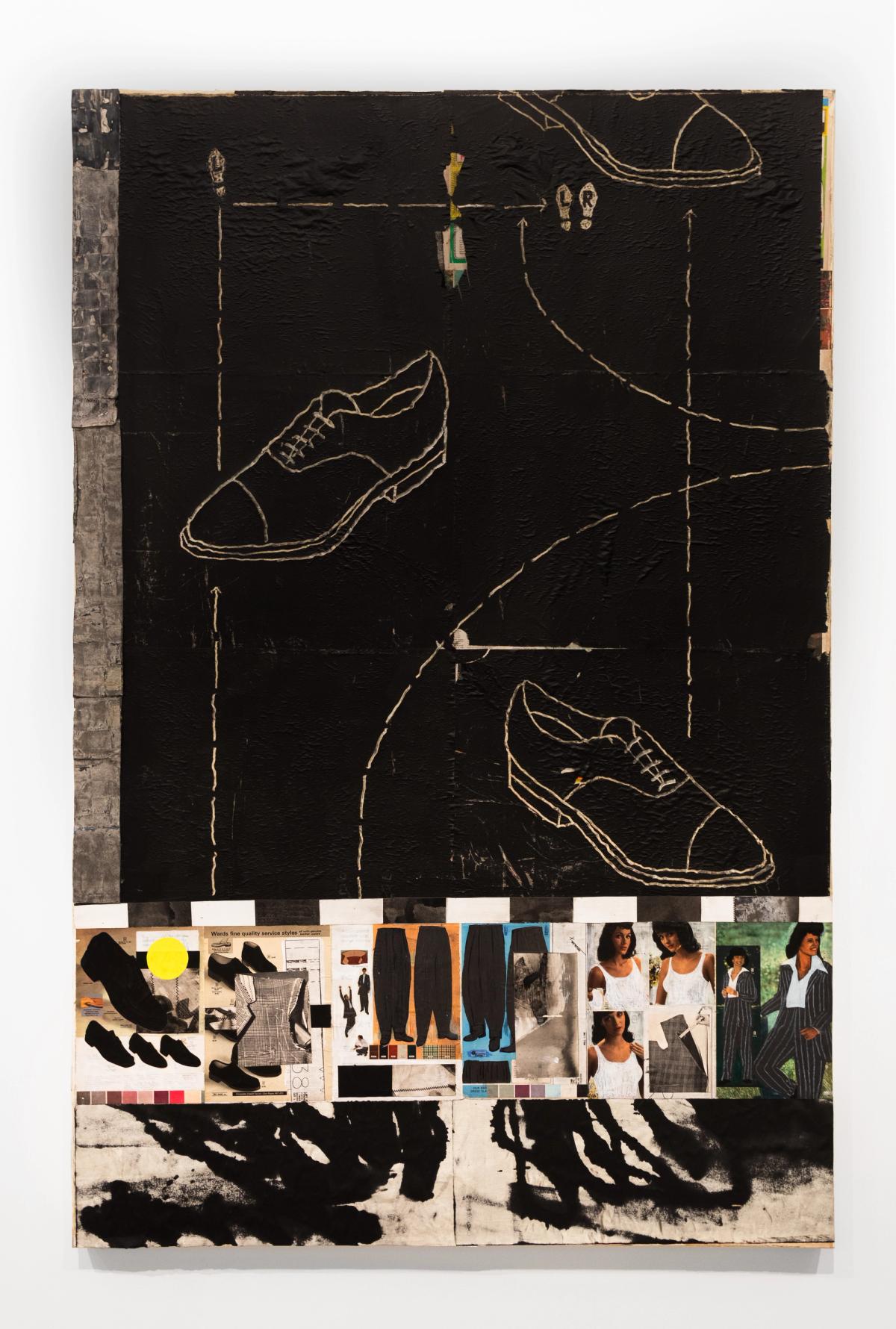 Most depictions of women in the work are manipulated images of white models from ads in a 1970s Montgomery Ward catalog -- the now bankrupt retail store once prevalent in many Texas border-towns. He’s browned their skin-tone and painted on coiffed hairstyles, billowing slacks, and the fingertip coats. He interrupts his works’ layered surfaces by sewing seams into paper that’s been woven, coated with glue and paint, and marked with lines of tailor’s chalk. Catherine S. Ramirez in her book The Woman in the Zoot Suit says that the pachuca’s masculine style and tough attitude was considered an affront to femininity and Americanism. “By appearing to betray gender norms during wartime, pachucas, many of whom were the bilingual and bicultural children of immigrants, seemed to betray the nation as well.” One can begin to see the inversion of value in this context as Montes Michie’s projects the pachuca likeness onto these vintage ads that highlight an idealized version of “American,” feminine beauty.