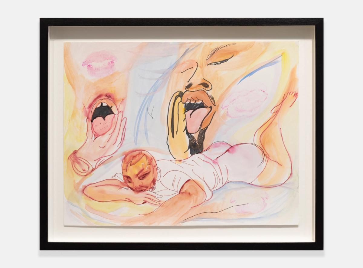 Known mostly for their paintings, which blur abstraction and figuration, Chase also works with textiles and nontraditional media such as animation, bookmaking, and large-scale installations. The works in Gentle Tug on Thigh trace a continuous dialogue between mediums, revealing how ideas shift while maintaining their emotional core. Here, drawing becomes not only a method but a language spoken quietly, yet with remarkable depth.