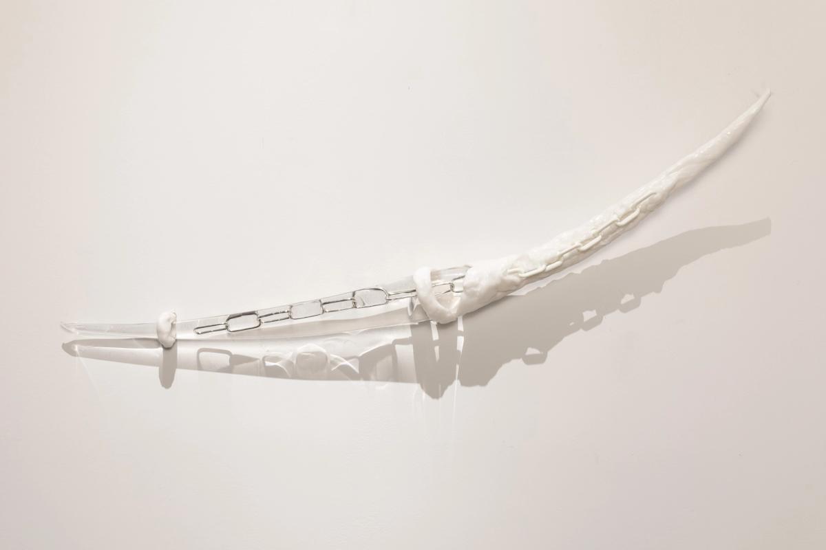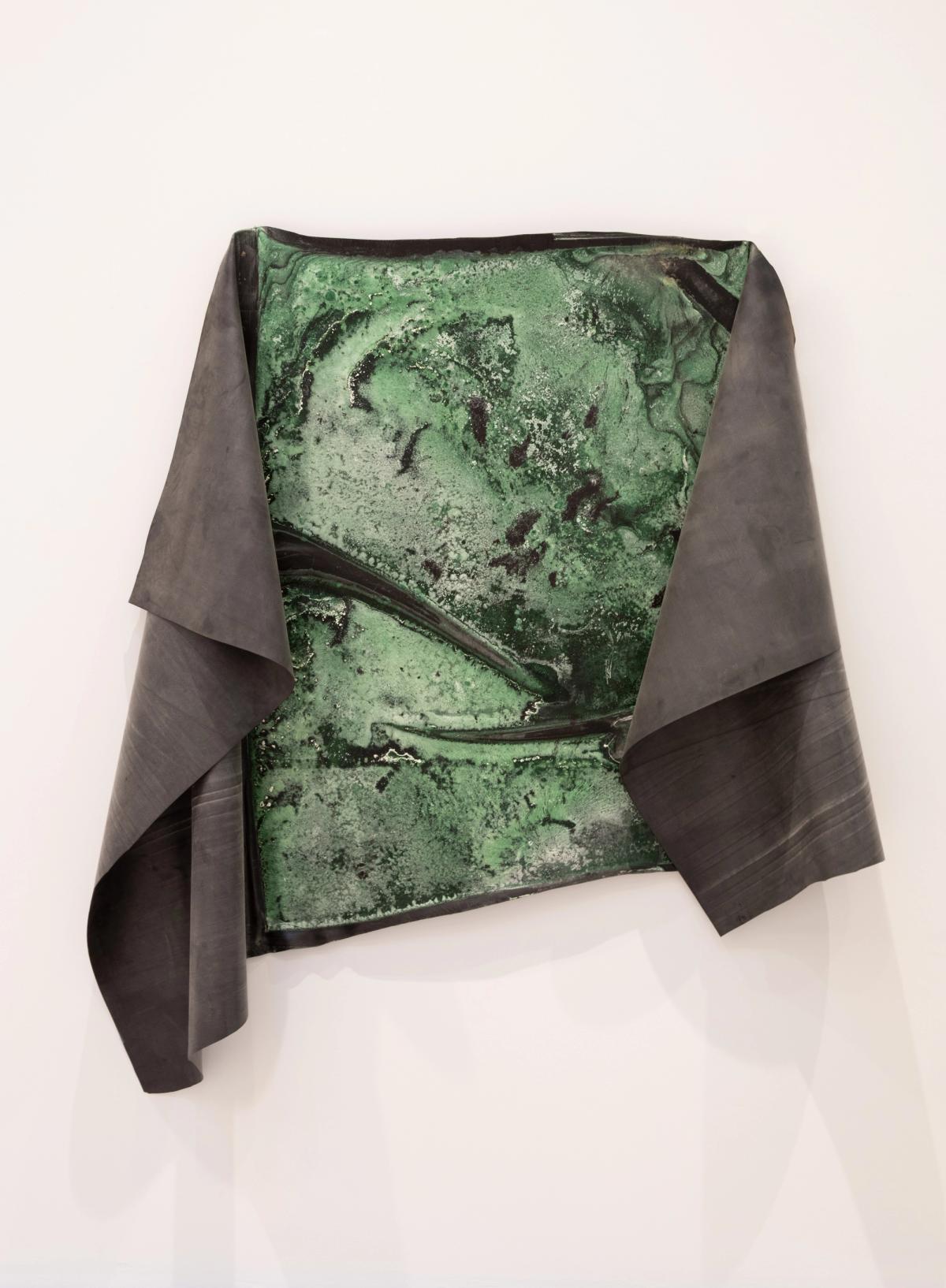 Since 2018, Dunham has been working on building a water sanctuary alongside a volcanic strand of 160-degree mineral-rich hot spring water in Southern California. Dunham comes to this interest in water as both alchemist and artist, considering how her work can conceptually, metaphysically and literally uncover hidden material principles. The works on view support water in its four phases - liquid, solid, vapor and semi-liquid. This last phase has only recently been put forth by a group of scientists and the material itself exists in a perpetual state of in-between - not quite solid and not yet liquid. Continuing this research, Dunham has created a new material called H+ which is featured in many of the pieces on view and changes forms through the duration of the exhibition. Like lines in a poem or lyrics in a song, Dunham’s materials fall into place as a mutable arrangement.